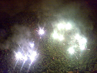 Then we went on to play the sparkles! Attempted to form 'J' and 'S' (our initials) with the sparkles. Once we lit up the first stick, we had to quickly light up the rest or it'll die off very quickly. Quite challenging to light all up within a short time. Look, 'S' is more successful than 'J'! HEE!